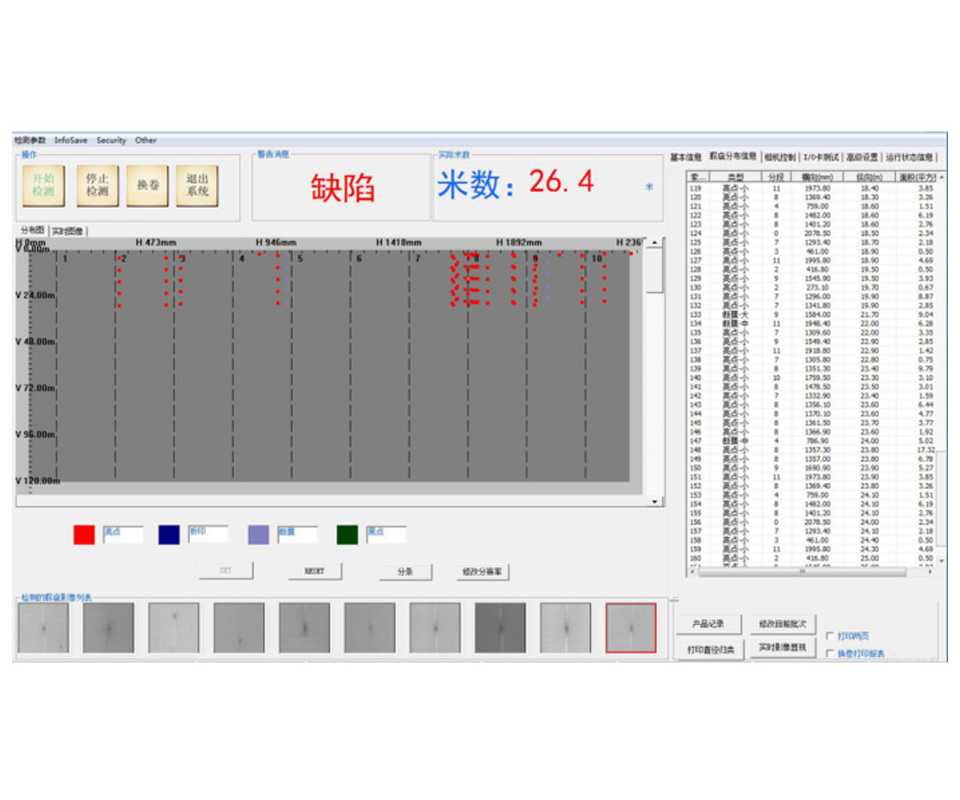 7、檢測匯總:系統自動生成無紡布卷材質量報表和疵點分布圖表。